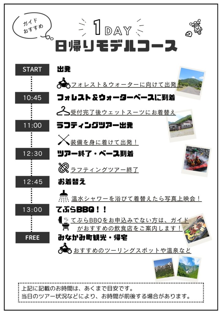 ツーリングの旅の間にラフティング!持ってくるものは水着だけ